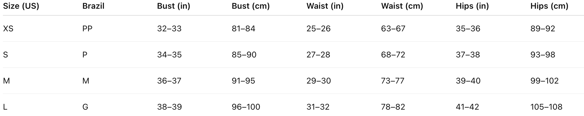 We encourage customers to carefully review size guides and product descriptions before purchasing. If you have any questions about sizing, fit, or materials, please reach out to us at cordeliabikinisinfo@gmail.com. We’re happy to help before you place your order.
